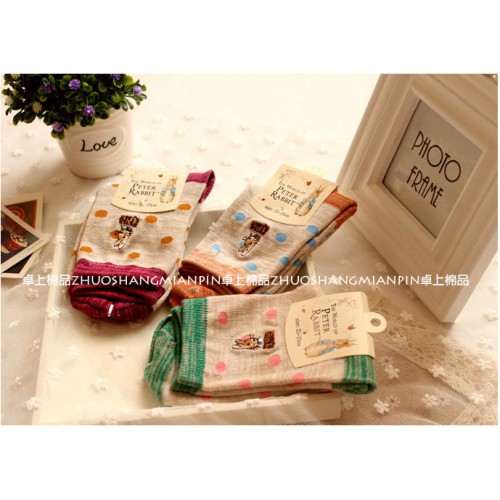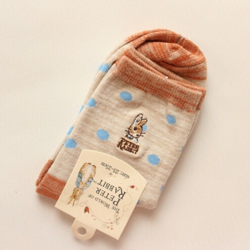 ถุงเท้าน่ารักกระต่ายน้อยปีเตอร์ (Peter Rabbit) ลายจุด 3 แบบ ข้อยาว สำหรับผู้หญิง ถุงเท้าจากซี่รี่ดัง "The World of Peter Rabbit" ถุงเท้านำเข้าลิขสิทธิ์จากญี่ปุ่น ผลิตในประเทศจีน ราคาถูกสุดๆ สำหรับใส่คู่กับรองเท้าผ้าใบได้อย่างลงตัว วัสดุผ้าเนื้อดี ราคาเบาๆ ถุงเท้ามีแบบให้เลือก ลูกค้าเลือกแบบก่อนหยิบลงตะกร้าได้ตามใจชอบเลยนะคะ
